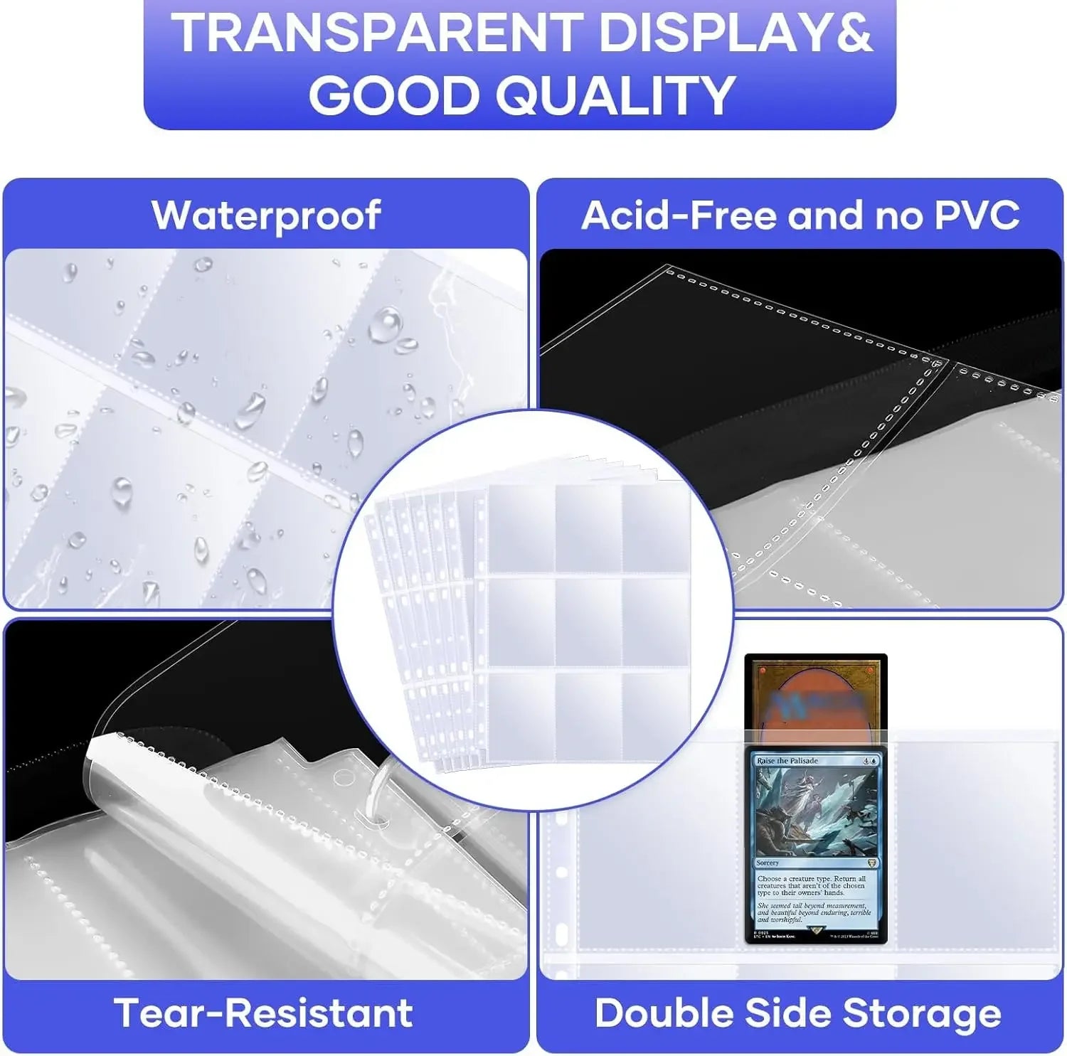 Double-Sided Card Sleeves Binder Pocket Gaming Trading Cards Kpop Album Page Binder Sheets for Stickers Stamps Card Page Storage