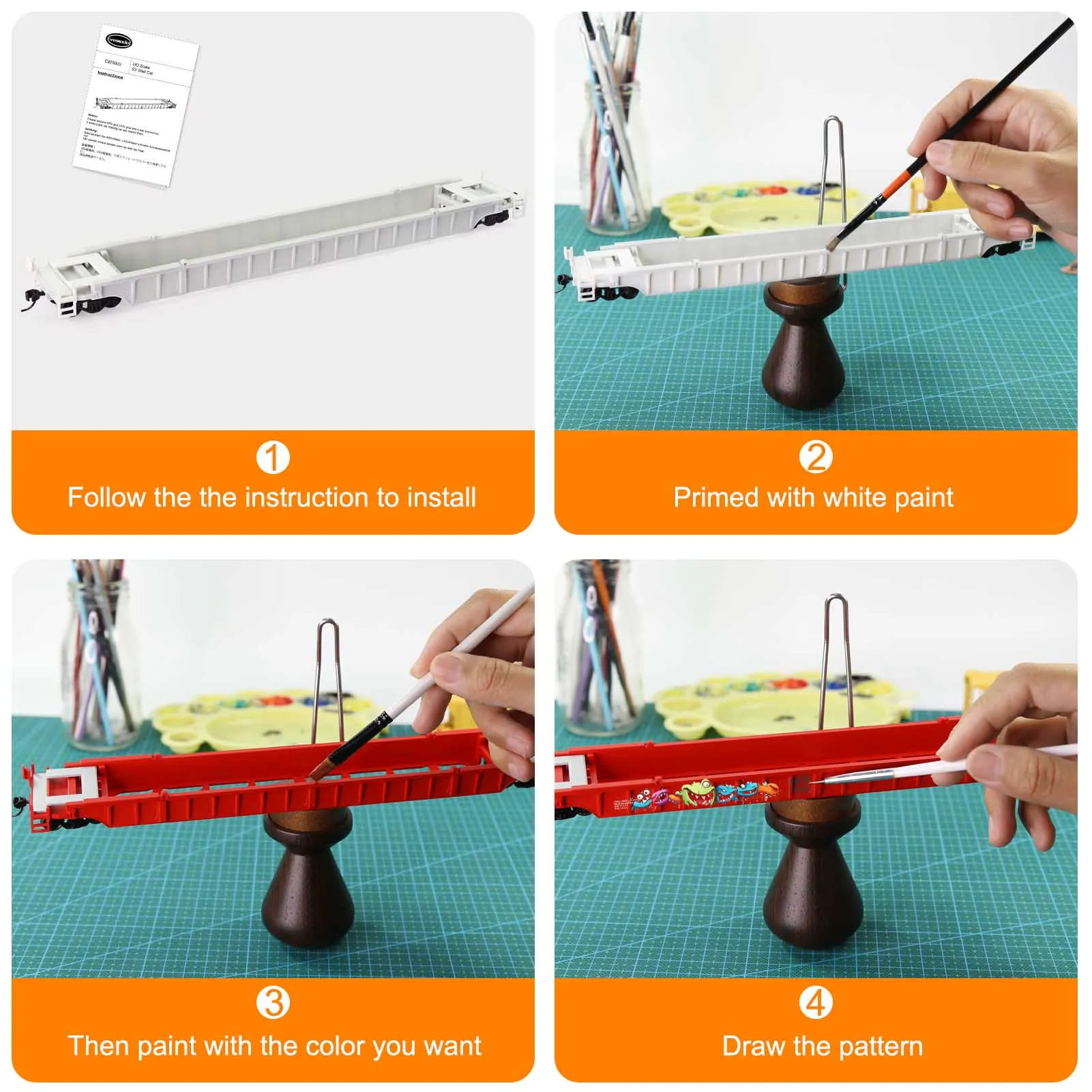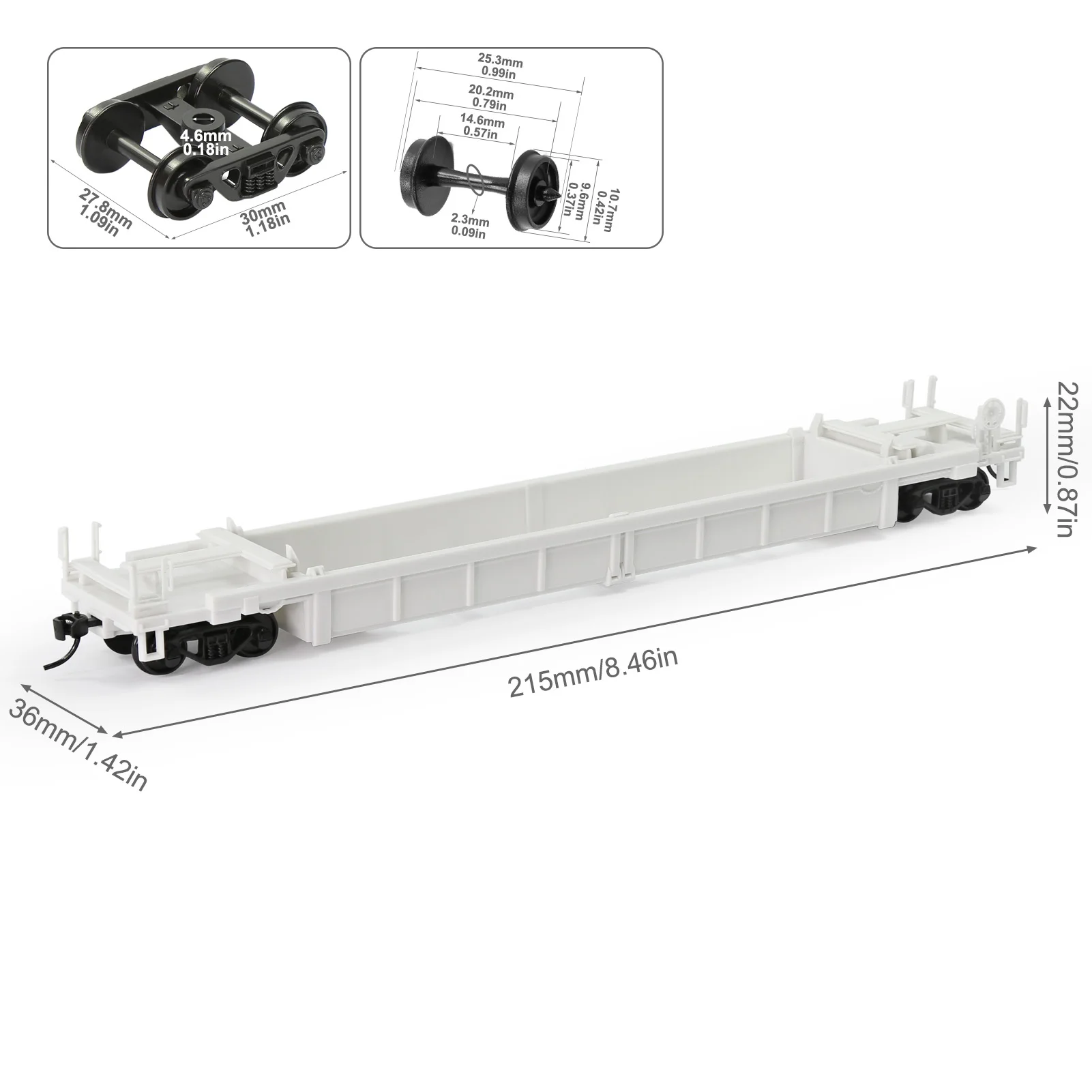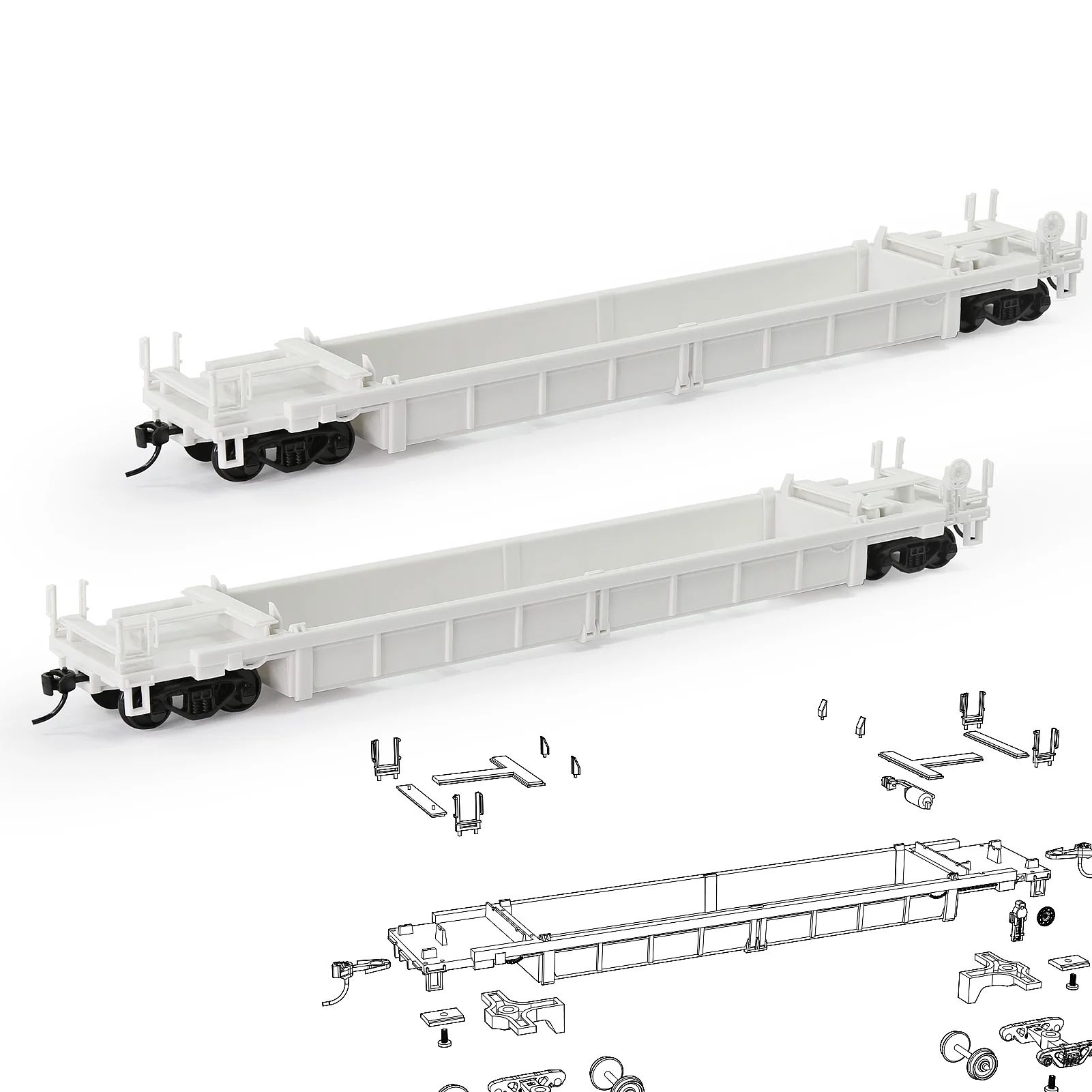 Evemodel 2 Units HO Scale 1:87 Blank Unassembled White Well Car Model Wagon
